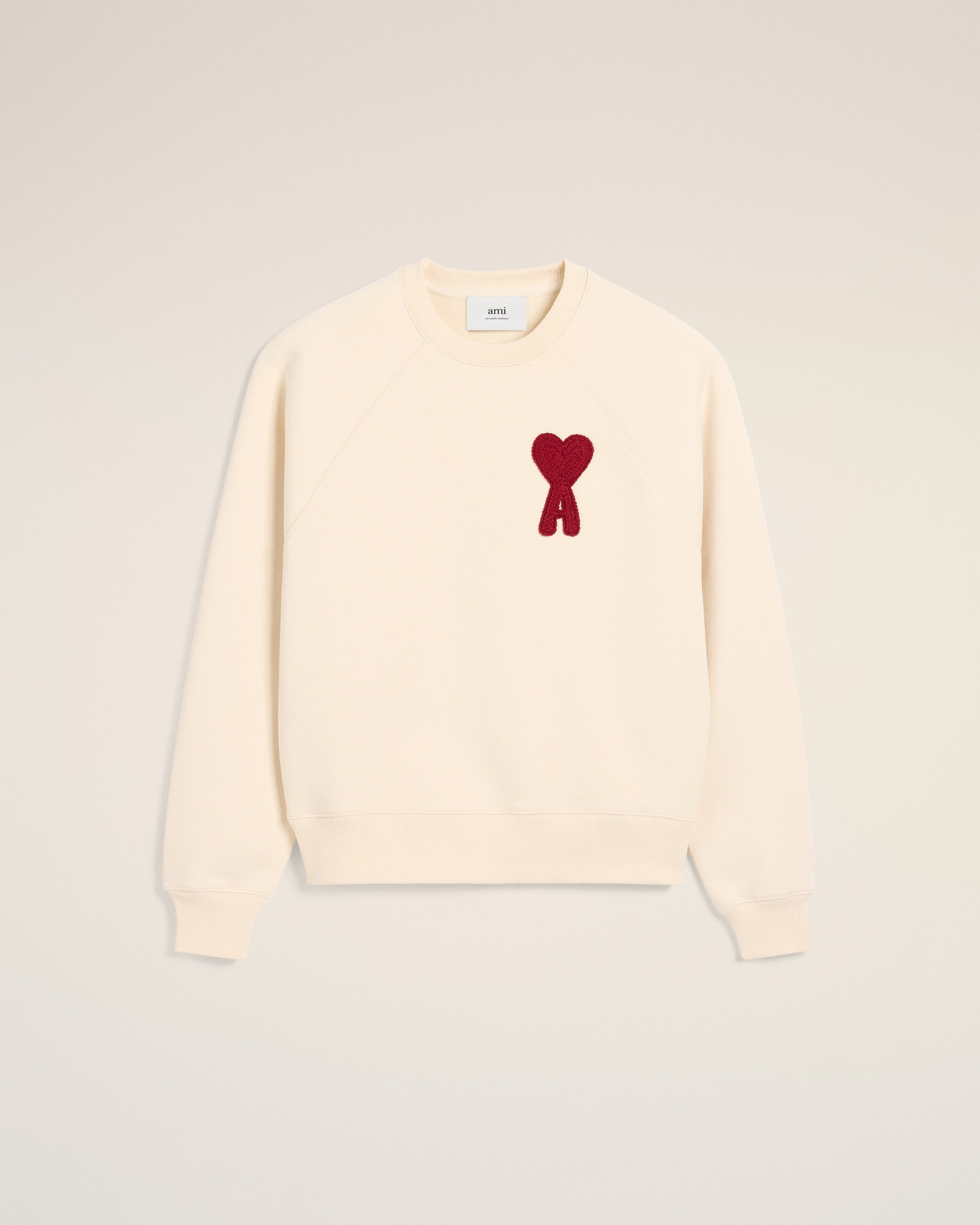 Ami de Coeur sweatshirt in heavy loopback organic cotton fleece. Boxy fit Unisex product 61 cm center back length (XS size) 65 cm center back length (M size) Red Ami de Coeur knitted patch Tonal "AMI" embroidery under back neckline Raglan sleeves Made in Portugal (with love) REF: USW065.747.136 SIZE & FIT This style is unisex. For man, take your normal size. For woman, take one size down than your usual size. Man model is 1m88 / 6'2" and is wearing a size M. Woman model is 1m81 / 5'11" and is wearing a size XS. COMPOSITION & CARE GUIDE 100% Organic Cotton Chlorine prohibited Machine wash at 30°C gentle Do not tumble dry Cool iron Do not dry clean
