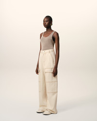 BEIGE COTTON CARGO WIDE FIT JEANS