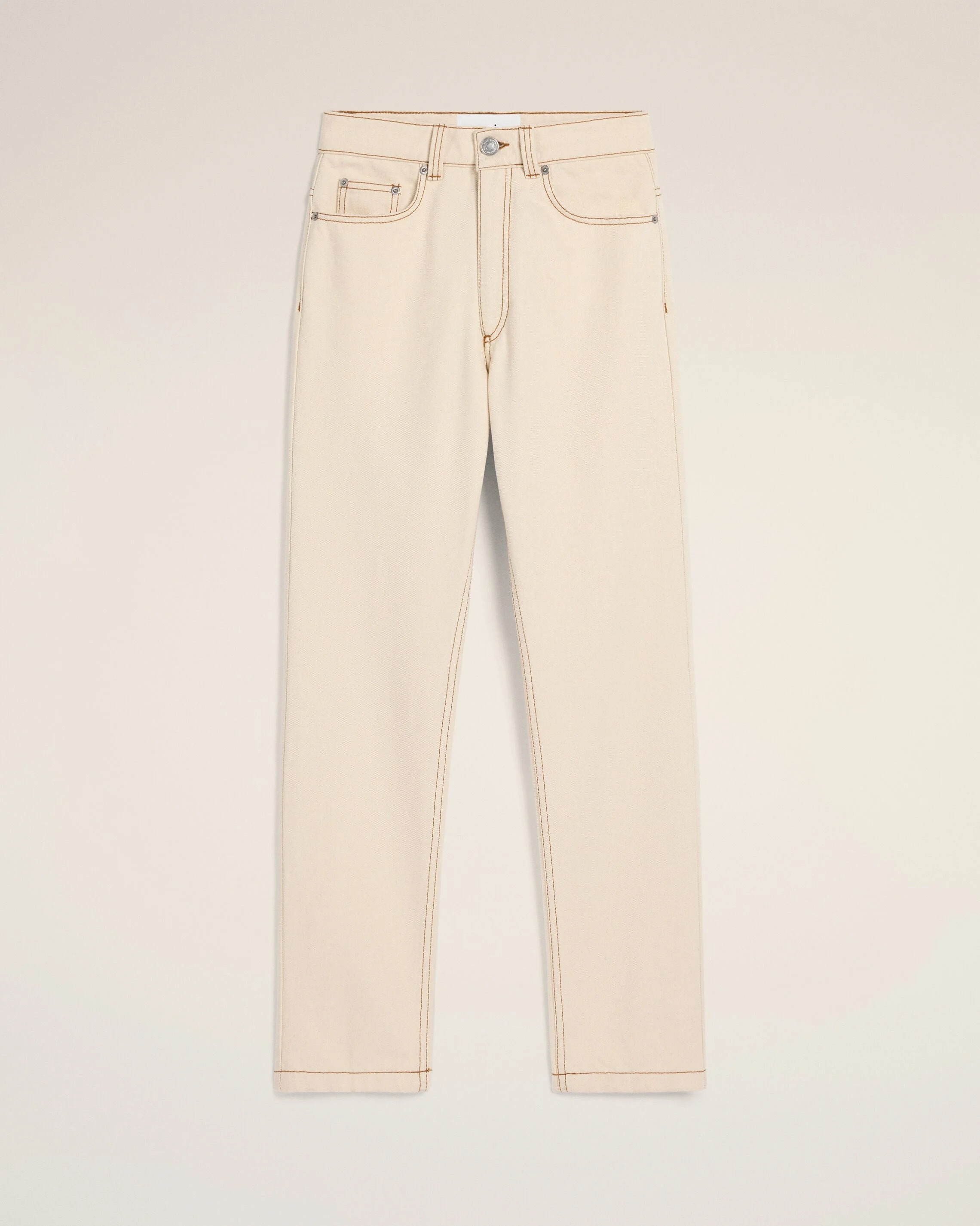 Classic fit jeans in colored cotton twill. Classic fit 18 cm bottom leg width (size 26) Classic waist Fitted leg 5 pockets Zipped fly Denim metal rivets and buttons in nickel color "ami alexandre mattiussi" patch on the back Tobacco topstitches Made in Portugal (with love) REF : FTR031.DE0039.136 SIZE & FIT Fits true to size. Take your normal size. COMPOSITION & CARE GUIDE 100% Cotton Machine wash at 30°C Chlorine prohibited Do not tumble dry Medium iron Dry clean possible Wash with similar colours