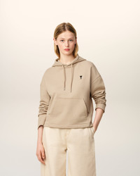 BEIGE COTTON CONTRASTED AMI DE COEUR HOODIE