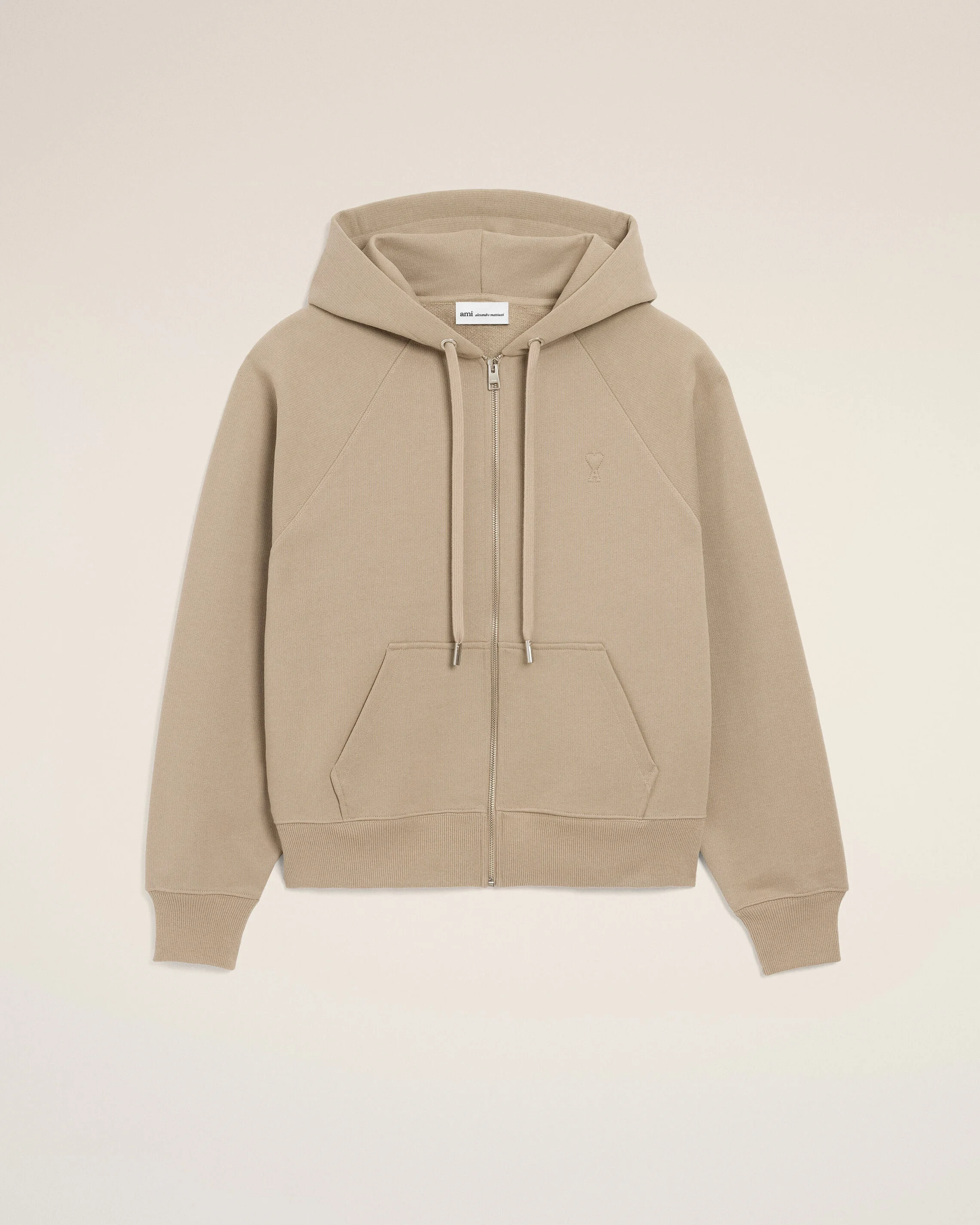 BEIGE COTTON EMBOSSED AMI DE COEUR ZIPPED HOODIE