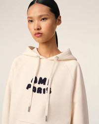 Ami Paris hoodie in heavy loopback organic cotton fleece. Boxy fit Unisex product 61 cm center back length (XS size) 65 cm center back length (M size) "Ami Paris" knitted patch Tonal "AMI" embroidery on the back Raglan sleeves Nickel color metal ends and "ami" engraved eyelets Made in Portugal (with love) REF: USW275.747.136 SIZE & FIT This style is unisex. For man, take your normal size. For woman, take one size down than your usual size. Man model is 1m87 / 6'2" and is wearing a size M. Woman model is 1m81 / 5'11" and is wearing a size XS. COMPOSITION & CARE GUIDE 100% Organic Cotton Chlorine prohibited Machine wash at 30°C gentle Do not dry clean Do not tumble dry Cool iron