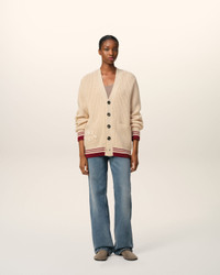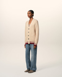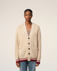 Cardigan in college ribs wool. Unisex product Half english ribs stitch "AMI Paris" knitted patch embroidered under right pocket Ami de Coeur knitted patch embroidered on the back under collar 73 cm center back length (size M) 59 cm center back length (size XS) Made in Portugal (with love) REF: UKC168.KN0068.136 SIZE & FIT This style is unisex and it's design to be worn oversize. Take your normal size. Man model is 1m86 / 6'1" and is wearing a size M. Woman model is 1m78 / 5'10" and is wearing a size XS. COMPOSITION & CARE GUIDE 100% New Wool Hand wash low temperature Chlorine prohibited Do not tumble dry Dry flat Cool iron Dry clean possible