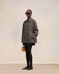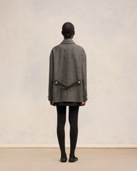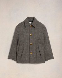 Oversize short coat in wool and cotton mix. Oversize fit 75 cm center back length (size 36) Lined Fabric martingale Domed metal snap buttons with engraved "ami alexandre mattiussi" Diagonal pockets with fake-flaps Chin strap with two horn buttons Slit middle back with a tab Rounded snap at the bottom sleeve Made in Romania (with love) REF : FCO214.WV0056.2004 SIZE & FIT This item is designed to be worn lose. Take your normal size. Model is 1m78 / 5'10" and is wearing a size 36. COMPOSITION & CARE GUIDE 56% New Wool, 44% Cotton Chlorine prohibited Do not tumble dry Dry clean gentle Cool iron Do not wash