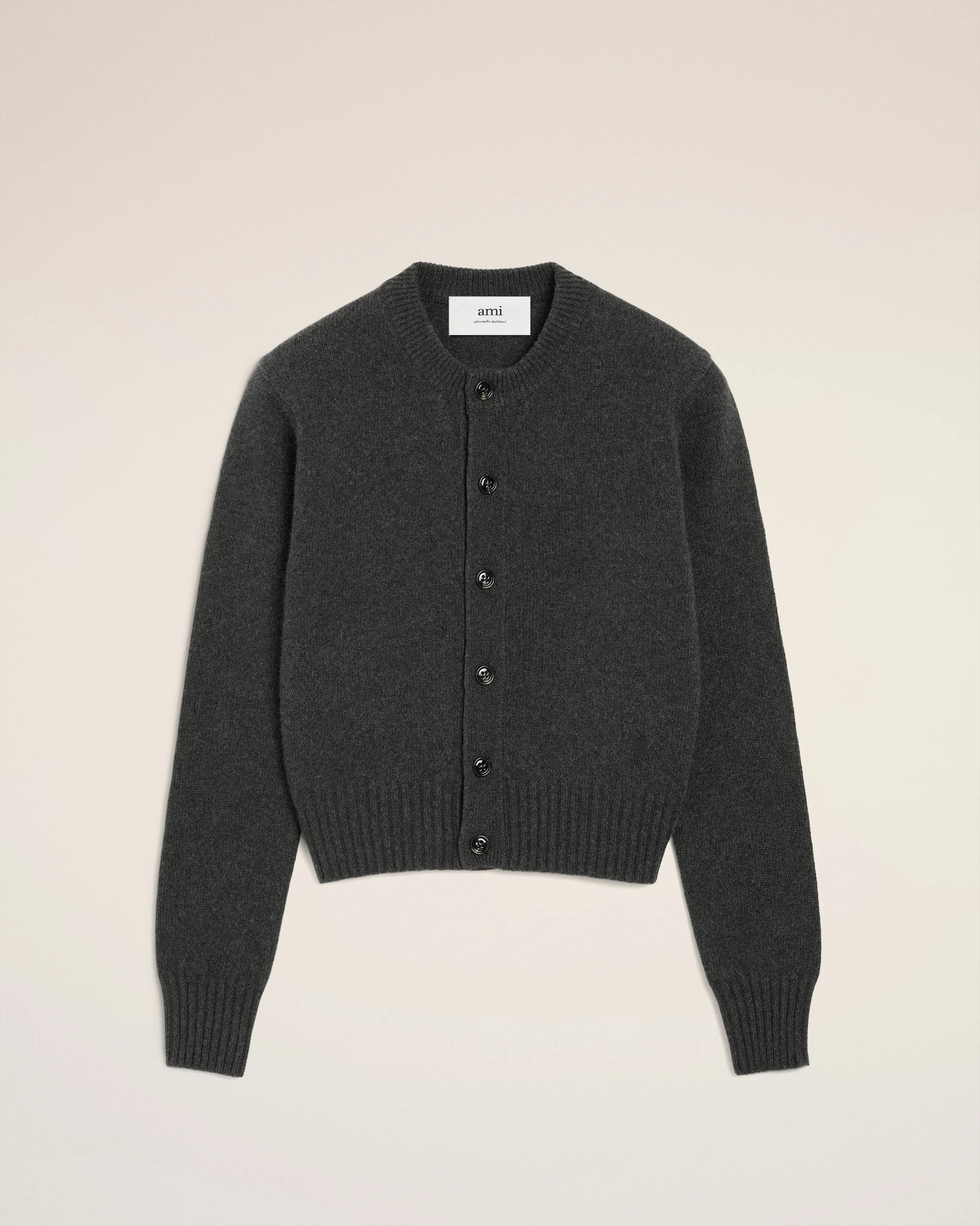 Cardigan in cashmere knit. Round collar "ami" engraved horn buttons Ami de Coeur embroidery on body bottom Jersey stitch 50 cm center back length (size S) Made in Italy (with love) REF: FKC364.005.020 SIZE & FIT Fits true to size. Take your normal size. Model is 175 cm / 5"8 and is wearing a size S. COMPOSITION & CARE GUIDE Main Material : 97% Cashmere 3% Wool Hand wash low temperature Chlorine prohibited Do not tumble dry Dry flat in shade Cool iron Dry clean possible Contains non-textile parts of animal origin
