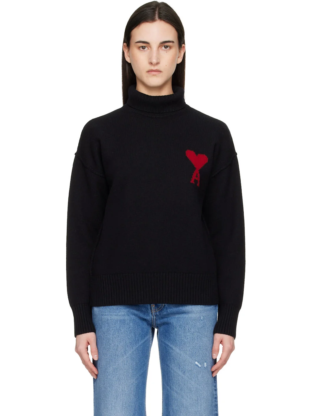 Black Contrast Ami de Coeur Funnel Neck Sweater