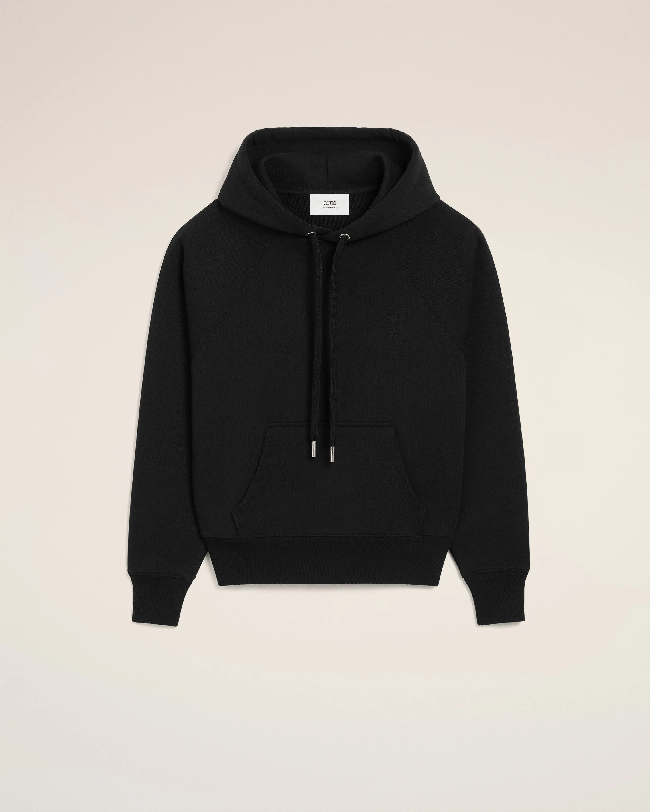 Ami de Coeur hoodie in heavy loopback cotton fleece. Unisex product Boxy fit Raglan sleeves Small embossed and topstitched Ami de Coeur on chest Tonal "ami" embroidery on the back under neckline Silver metal ends and "ami" engraved eyelets 61cm center back length (size XS) 65cm center back length (size M) Made in Portugal (with love) REF: USW758.747.001 SIZE & FIT This style is unisex. For man, take your normal size. For woman, take one size down than your usual size. Man model is 186 cm / 6"1 and is wearing a size M Woman model is 175 cm / 5"8 and is wearing a size XS COMPOSITION & CARE GUIDE Main Material : 100% Cotton Chlorine prohibited Do not tumble dry Do not dry clean Cool iron Machine wash at 30°c gentle