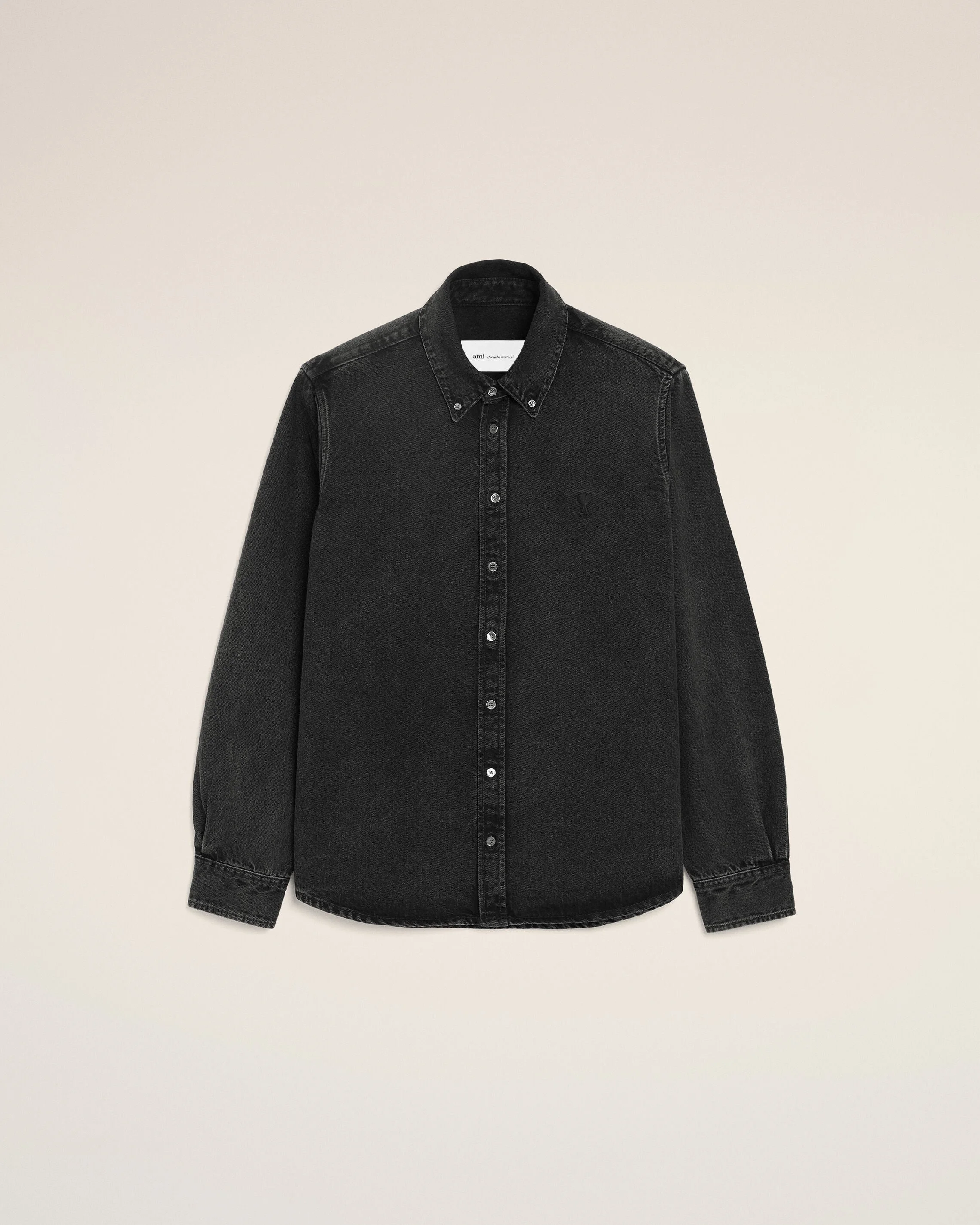 Ami de Coeur button down shirt in used black light denim. Unisex product Classic fit Black Ami de Coeur chest embroidery Button down collar Buttoned tab on front and cuffs Mother-of-pearl buttons Black topstitches Made in Portugal (with love) REF: USH785.DE0125.031 SIZE & FIT This style is unisex. For man, take your normal size. For woman, take one size down than your usual size. Woman model is 178 cm / 5"9 and is wearing a size XS. Man model is 189 cm / 6"2 and is wearing a size M. COMPOSITION & CARE GUIDE Main Material : 100% Cotton Machine Wash At 30°C Chlorine Prohibited Do Not Tumble Dry Medium Iron Dry Clean Possible Wash Inside Out Wash With Similar Colours Contains Non-Textile Parts Of Animal Origin
