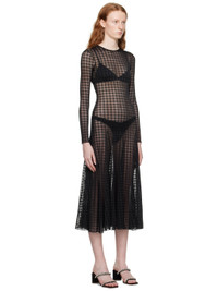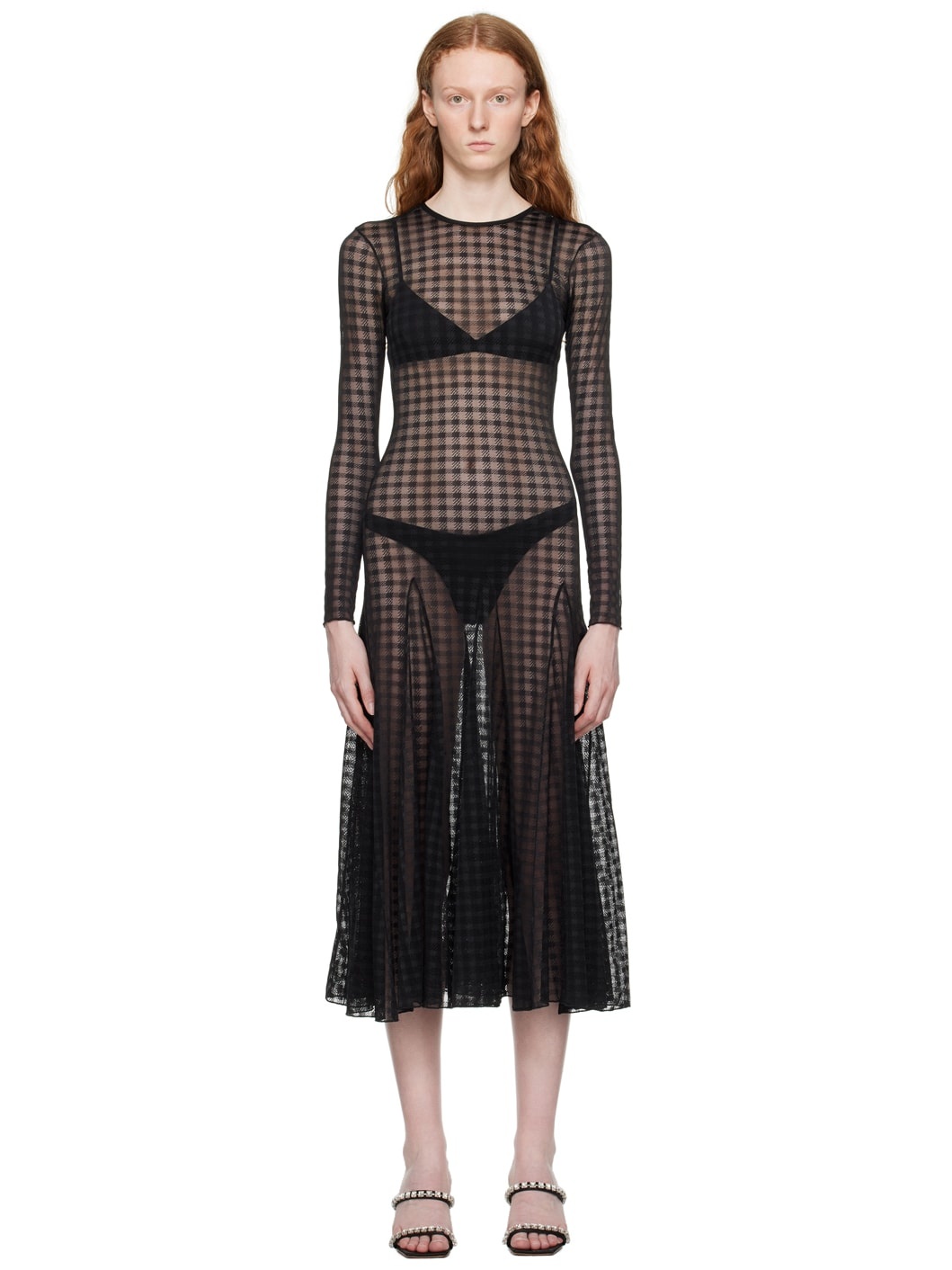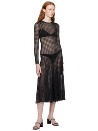 Sheer stretch nylon mesh dress. Lace check pattern throughout. · Round neck · Godets at hem · Button fastening at back collar · Keyhole at back Supplier color: Noir