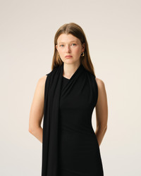Long sleeveless lavaliere dress in crepe jersey. Fitted fit Sleeveless Scarf sewn to side seam, adjustable when worn Made in Portugal (with love) REF: FDR657.JE0223.001 SIZE & FIT This item is designed for a close fit. Take your normal size. Woman model is 178 cm / 5"9 and is wearing a size S. COMPOSITION & CARE GUIDE Main Material : 83% Viscose, 17% Polyamide Chlorine Prohibited Do Not Tumble Dry Cool Iron Dry Clean Gentle Hand Wash Low Temperature