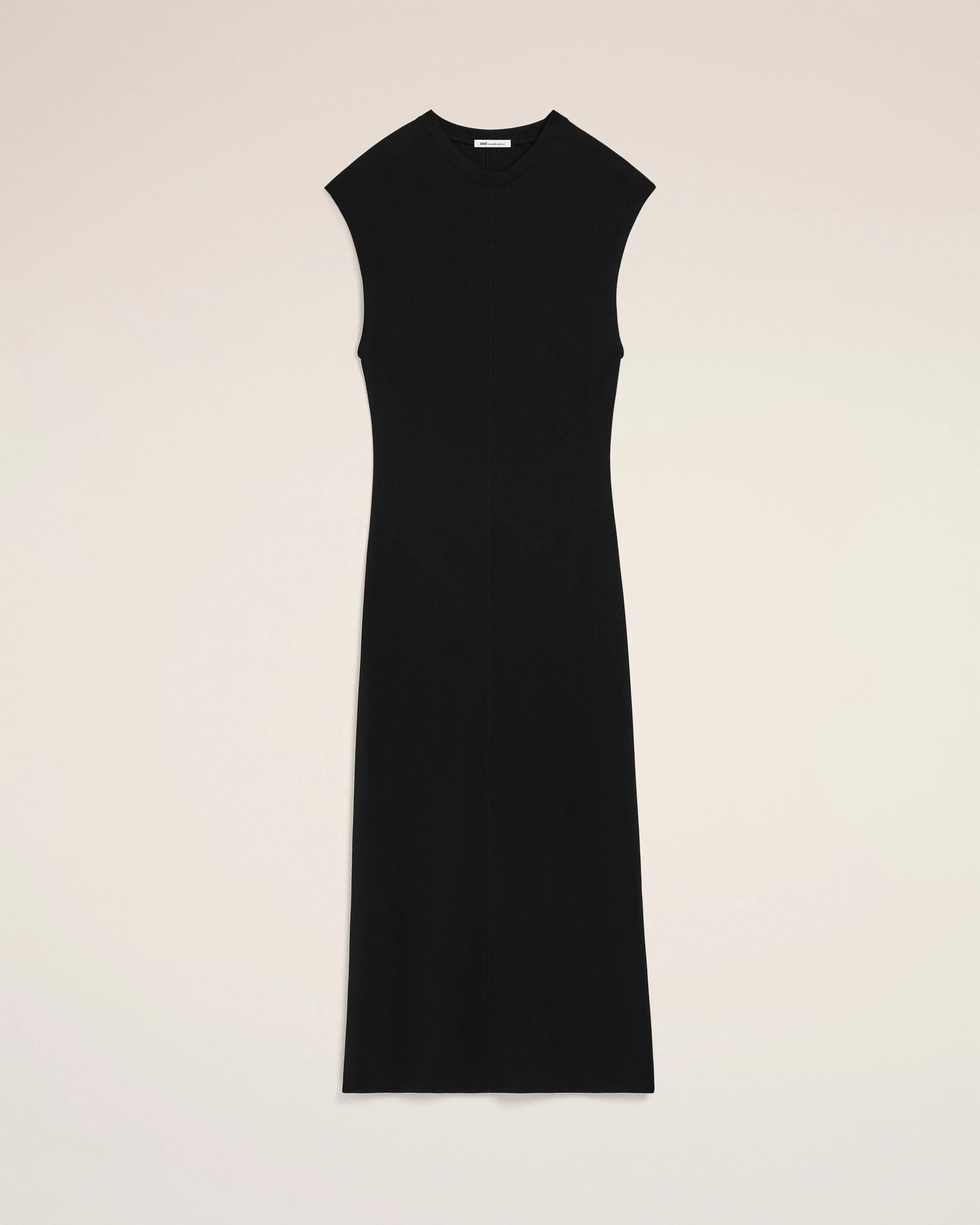 Sleeveless long dress in crepe jersey. Fitted fit Sleeveless Tone-on-tone zigzag stitching on centre front and back seam and neckline Silver vertical Ami de Coeur plate at center back, under collar Slit at center back Made in Portugal (with love) REF: FDR648.JE0223.001 SIZE & FIT This item is designed for a close fit. Take your normal size. Woman model is 175 cm / 5"7 and is wearing a size S. COMPOSITION & CARE GUIDE Main Material : 83% Viscose, 17% Polyamide