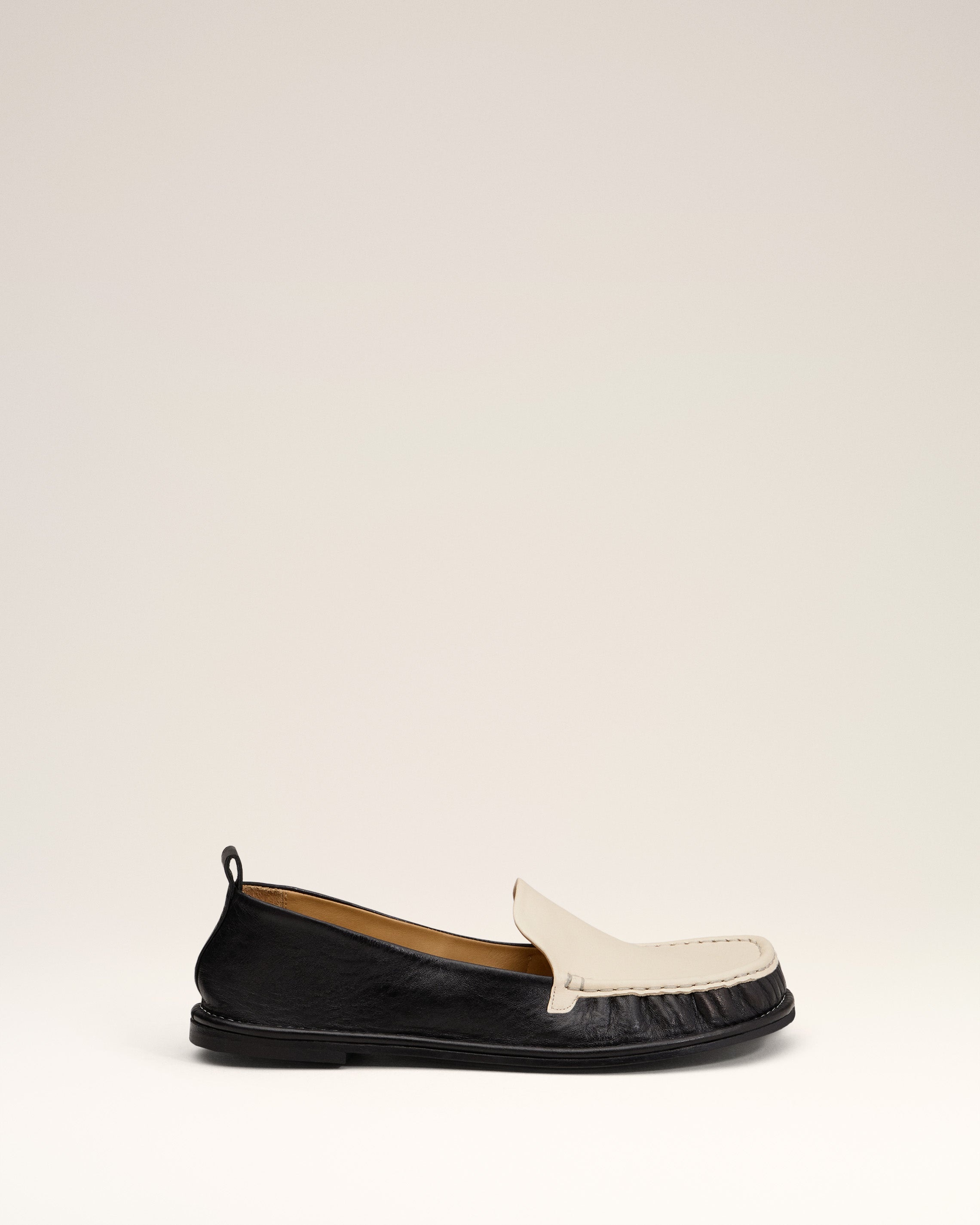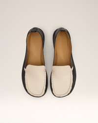 Bicolor anatomical-toe loafer in shiny crispy leather. Shiny smooth leather lining Tonal embossed "ami alexandre mattiussi" logo at the back Contrasted topstitches San cripino assembly Embossed "ami alexandre mattiussi" logo Leather sole Made in Portugal (with love) REF: USV058.AL0095.001 SIZE & FIT Fits true to size. Take your normal size. COMPOSITION & CARE GUIDE 100% Cow Leather Use a soft cloth for cleaning.