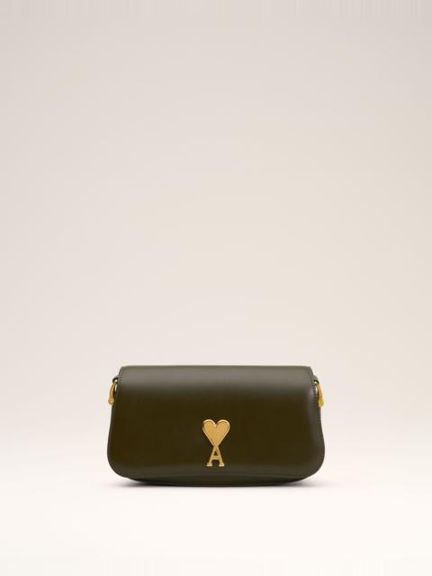 Paris Paris shoulder bag in smooth box leather. Suede lambskin lining Ami de Coeur stud One central compartment with a patched pocket and one front compartment Adjustable leather strap, shoulder carry Magnetic flap closure Metal hardware in vibrated brass color Size: 21x11x6 cm Made in Morocco (with love) REF: ULL018.AL0104.001 SIZE & FIT Size: 21x11x6 cm COMPOSITION & CARE GUIDE 100% Calfskin Our leathergoods are made from delicate materials. To keep the original aspect of the leather as long as possible, please avoid contact with abrasive and oily substances. Make sure not to expose them at the direct light for too long and to wipe them with a soft and dry cloth when wet. To avoid deformations, insure to not overload them. Keep them in their dust bag and safe from humidity.