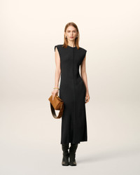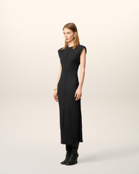 Long dress with raw edge details in viscose crepe. Fitted fit Invisible zip at center back Fully lined Slit at center back Raw edge finishing at the bottom, edge of back slit, armholes and center front 125cm center back length (size 36) Made in Romania (with love) REF: FDR626.VI0039.020 SIZE & FIT This item is designed for a close fit. Take the next size up for a semi-fitted cut. Model is 177 cm / 5"9 and is wearing a size 36. COMPOSITION & CARE GUIDE Main Material : 99% Viscose 1% Elastane Main Lining : 100% Polyester Do not wash Chlorine prohibited Do not tumble dry Cool iron Dry clean petroleum solvent only on a gentle process
