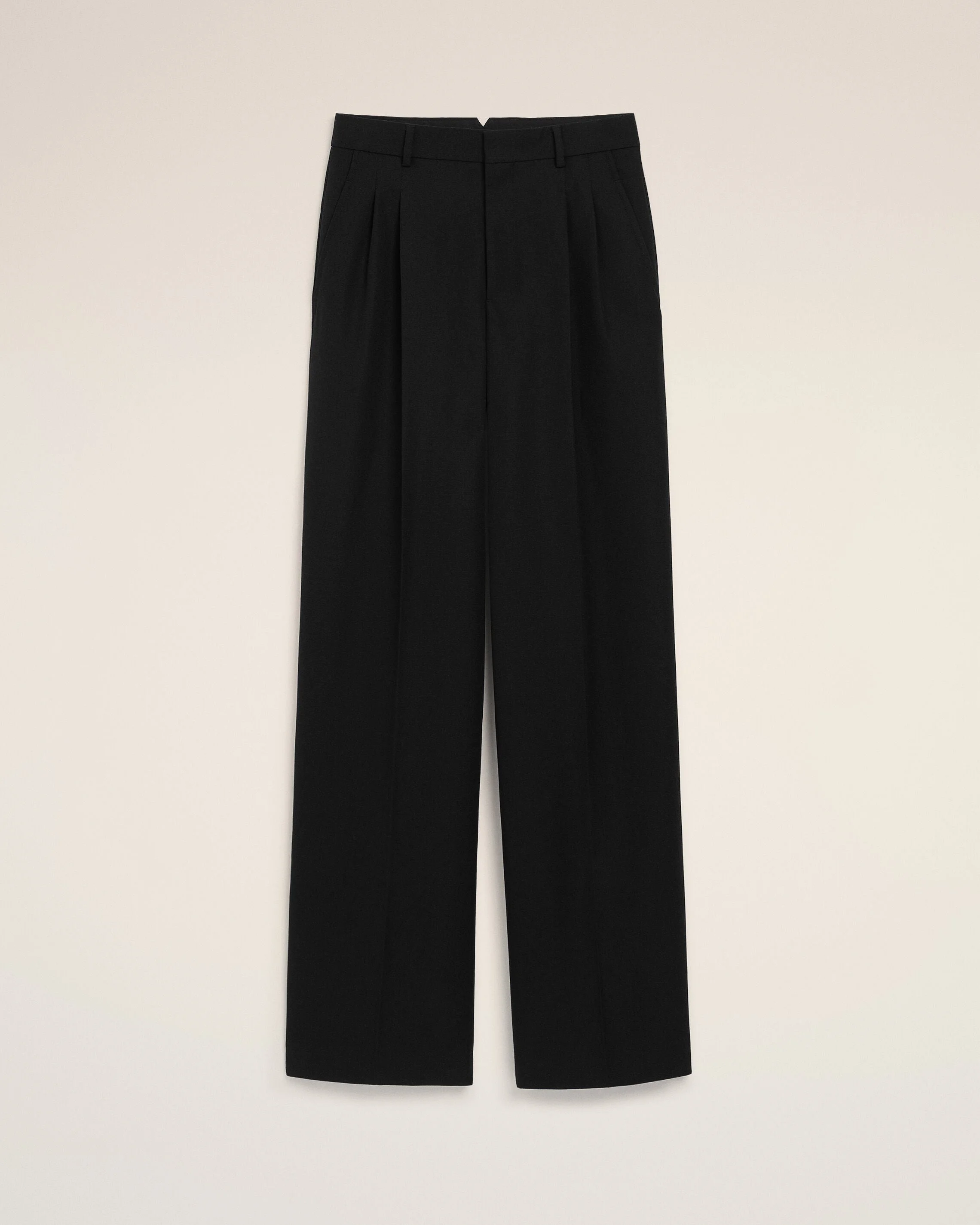 BLACK NEW WOOL LOW WAIST WIDE TROUSERS