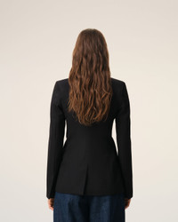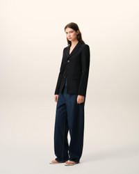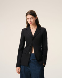 Simple breasted jacket in wool canvas. Fitted fit Single breasted 1 functionnal buttoned holes, 2 decorative ones Bottom sleeves buttoned Horn Ami buttons Flap pockets Slit middle back Fully lined "Ami Paris Heritage" label sewn inside the jacket Made in Romania (with love) REF: FBV762.WV0195.001 SIZE & FIT This item is designed for a close fit. Take your normal size. If you're between sizes, we recommend choosing a size bigger than your usual size. Woman model is 181 cm / 5"9 and is wearing a size 36. COMPOSITION & CARE GUIDE Main Material : 100% New Wool Main Lining : 50% Polyester, 50% Cotton Sleeves Lining : 50% Polyester, 50% Cotton Sleeves Lining : 54% Acetate, 45% Viscose, 1% Polyester Pocket Lining : 65% Polyester, 35% Cotton Do Not Wash Chlorine Prohibited Do Not Tumble Dry Cool Iron Dry Clean Gentle