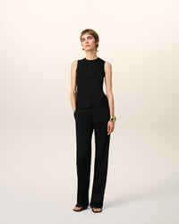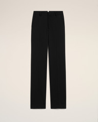 Straight trousers in wool gabardine. Straight fit 23 cm bottom leg width (size 36) Front lining to knees Zip fly V detail on the back "ami" waistband Buttoned back pockets Horn buttons Made in Romania (with love) REF: FTR506.WV0067.001 SIZE & FIT Fits true to size. Take your normal size. Model is 1m74 / 5'9" and is wearing a size 36. COMPOSITION & CARE GUIDE 100% New Wool Do not wash Chlorine prohibited Do not tumble dry Cool iron Dry clean petroleum solvent only on a gentle process
