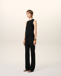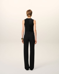 BLACK WOOL CONTRASTED STRAIGHT TROUSERS
