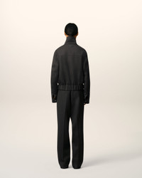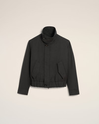 Harrington jacket in wool gabardine. Unisex product High collar with horn buttons with metal eyelets Nickel double metal zipper with "ami" engraved puller Adjustable cuffs with horn buttons with metal eyelets Side flap pockets, and internal pocket with invisible snap buttons Elasticated waist "ami alexandre mattiussi" leather label on the back Fully lined and padded 62 cm center back length (size XS) 64 cm center back length (size M) Made in Romania (with love) REF: UJK822.WV0088.020 SIZE & FIT This style is unisex. For man, take your normal size. For woman, take one size down than your usual size. Man model is 186 cm / 6"1 and is wearing a size M. Woman model is 181 cm / 5"11 and is wearing a size XS. COMPOSITION & CARE GUIDE Main Material : 100% New Wool Main Lining : 50% Polyester 50% Cotton Padding : 100% Polyethylene Padding : 100% Polyethylene Pocket Lining : 100% Cotton Do not wash Chlorine prohibited Do not tumble dry Cool iron Dry clean gentle