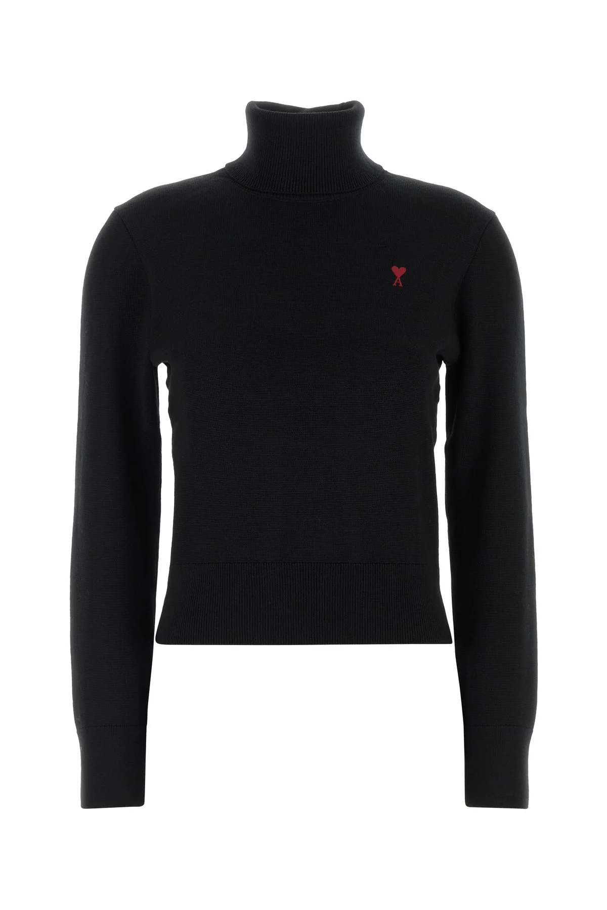 Sweater realized in pure merino wool characterized by Ami De Coeur embroidery on the chest. - Turtleneck - Ribbed cuffs and hemline DETAILS Black wool sweater Exterior: 100% Merino wool Made in portugal Sample size: XS