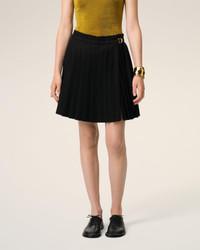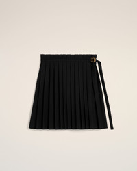 BLACK WOOL TWILL SHORT PLEATED SKIRT