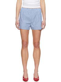 Cotton poplin boxers. Stripes throughout. · Elasticized waistband · Button fly · Embroidered logo at cuff · Vented outseams · Mother-of-pearl hardware Supplier color: Azure/White 100% cotton. Made in Portugal 251482F072002
