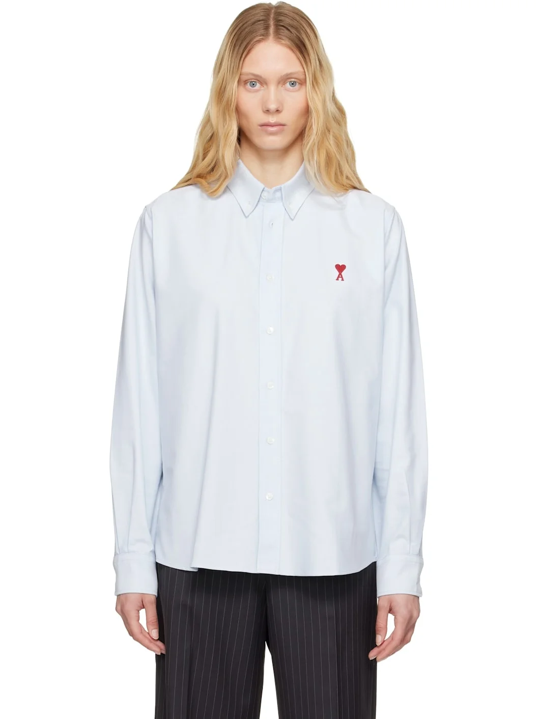 Cotton oxford cloth shirt. - Button-down spread collar - Button closure - Logo embroidered at chest - Shirttail hem - Pleated single-button barrel cuffs - Mother-of-pearl hardware Supplier color: Sky blue