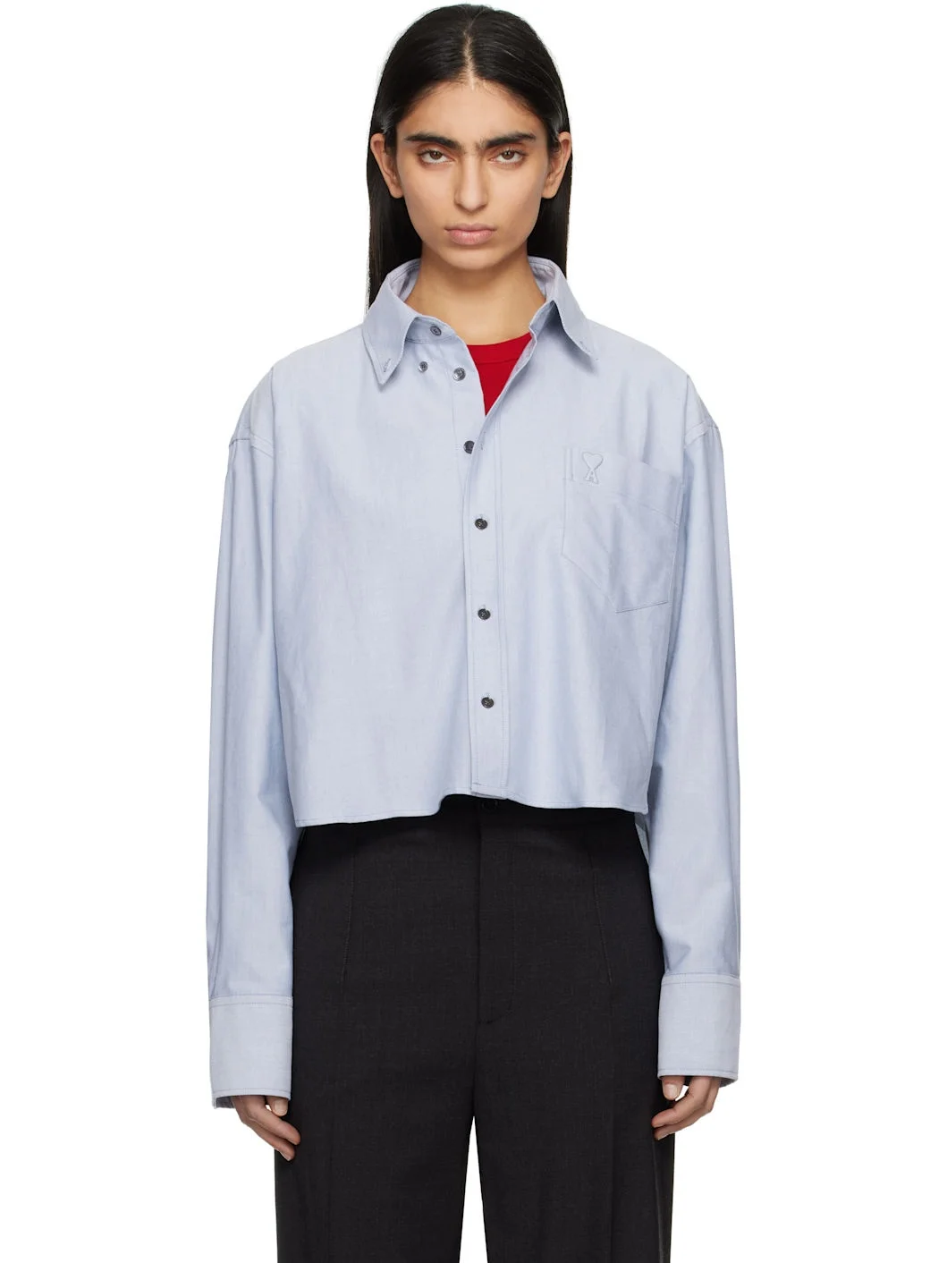 Blue Cotton Button-Down Cropped Oversized Shirt