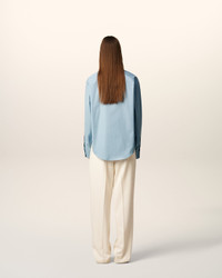 Embossed Ami de Coeur shirt in coton popeline. Unisex product Boxy fit Classic collar Buttonned tab on front and cuffs Mother of pearl buttons Tonal Ami de Coeur embroidery on the chest 77 cm center back length (size M) Made in Poland (with love) REF: USH766.CO0063.4506 SIZE & FIT This style is unisex and it's design to be worn oversize. Take your normal size. Man model is 186 cm / 6"1 and is wearing a size M. Woman model is 179 cm / 5"10 and is wearing a size XS. COMPOSITION & CARE GUIDE Main Material : 100% Cotton Chlorine prohibited Do not tumble dry Dry clean gentle Cool iron Machine wash at 30°c gentle