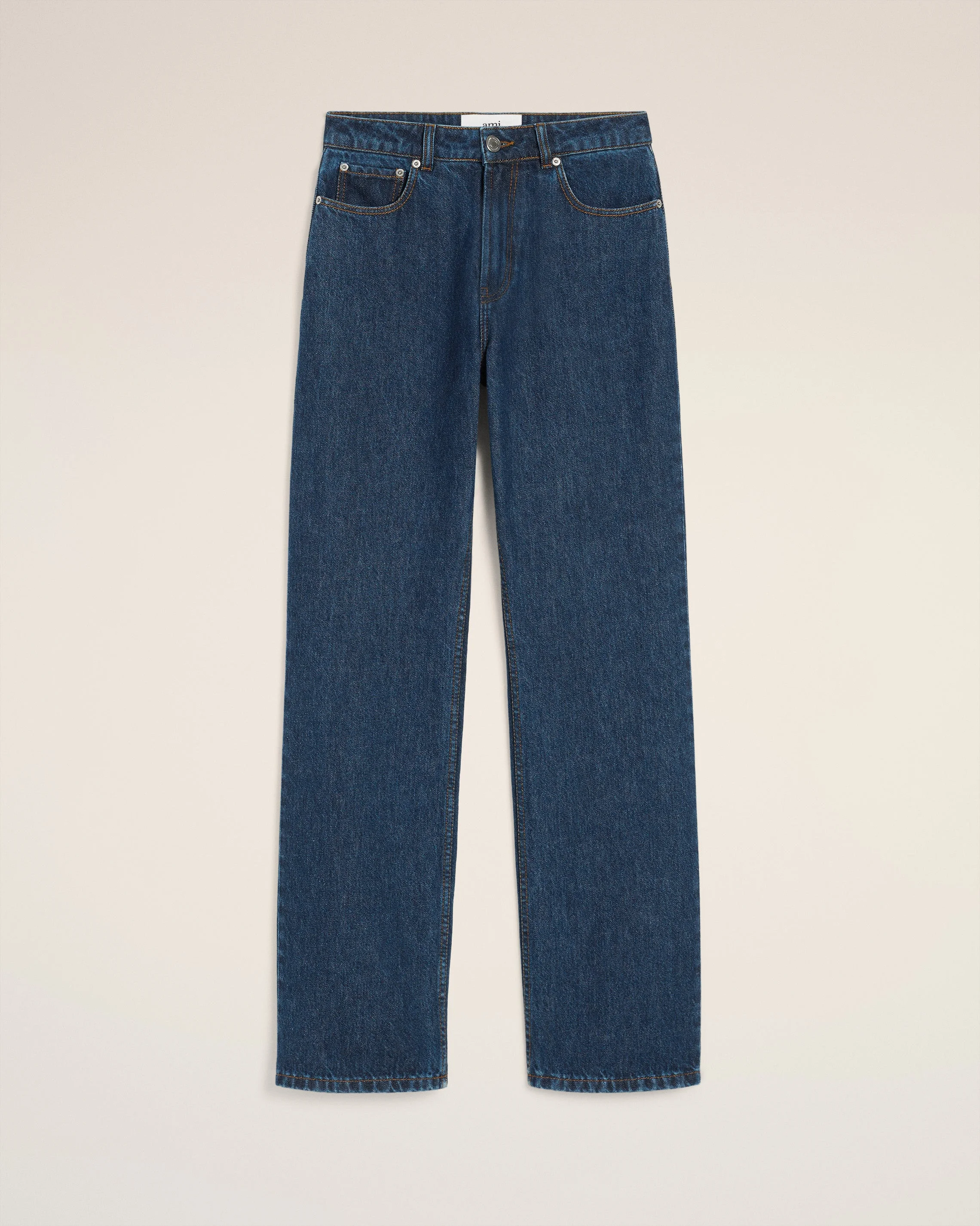 Large fit jeans in raw indigo denim. Large fit Classic waist Large leg Zipped fly 5 pockets Denim metal rivets and buttons in nickel color "ami alexandre mattiussi" patch on the back Tobacco topstitches 25 cm bottom leg width (size 26) Made in Portugal (with love) REF: FTR450.DE0104.402 SIZE & FIT Fits true to size. Take your normal size. Model is 175 cm / 5"8 and is wearing a size 26. COMPOSITION & CARE GUIDE Main Material : 100% Cotton Pocket Lining : 65% Polyester 35% Cotton Machine wash at 30°c Chlorine prohibited Do not tumble dry Medium iron Dry clean possible Wash inside out Wash with similar colours
