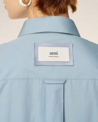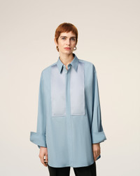 Long sleeves shirt with bi material bib in cotton poplin and satin. Unisex product Oversized fit Classic collar Hidden button placket at the front Buttoned cuffs Mother of pearl buttons Woven label applied to satin raw edge patch at the center back yoke Raw edge finishes Center back length: 90 cm (size M) Made in Madagascar (with love) REF: USH778.CO0063.4506 SIZE & FIT This style is unisex and it's design to be worn oversize. Take your normal size. Man model is 184 cm / 6"0 and is wearing a size M. Woman model is 178 cm / 5"10 and is wearing a size XS. COMPOSITION & CARE GUIDE Main Material : 100% Cotton Secondary Material : 95% Polyester 5% Elastane Collar : 100% Vinyl Polychloride Do not wash Chlorine prohibited Do not tumble dry Cool iron Dry clean gentle