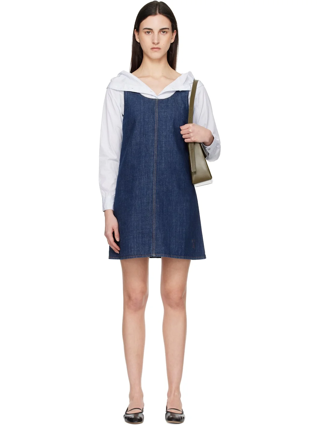 Non-stretch denim minidress. · Scoop neck · Darts at bust · Logo embroidered at front hem · Zip closure at low back · Contrast stitching in tan Supplier color: Indigo 100% cotton. Made in Portugal 261482F052001