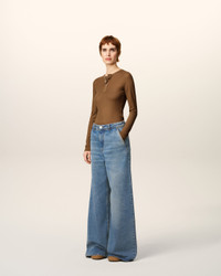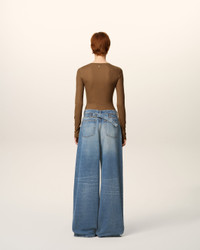 Super Wide fit jeans in used indigo denim. Very large fit Classic waist Very large leg Zipped fly 5 pockets Denim metal rivets and buttons in nickel color Tightening strap on the back Tobacco topstitches 35 cm bottom leg width (size 26) Made in Portugal (with love) REF: FTR819.DE0046.480 SIZE & FIT This item is designed to be worn lose. Take your normal size. Model is 178 cm / 5"10 and is wearing a size 26. COMPOSITION & CARE GUIDE Pocket Lining : 65% Polyester 35% Cotton Main Material : 100% Cotton Machine wash at 30°c Chlorine prohibited Do not tumble dry Medium iron Dry clean possible Wash inside out