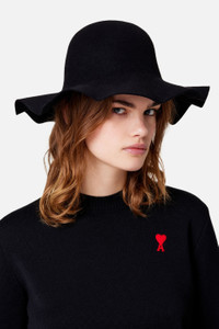 Product Description 001 -BLACK Furs & Skins->Hare Fur Borsalino x Ami Hat from AMI Paris. BORSALINO x AMI hat in hare fur felt. - Floppy and wavy rims - 3 sizes: 57 cm / 59 cm / 61 cm 100% Har Fur Felt REF UHA260.313001 Size & Fit Size 1: 57 cm Size 2: 59 cm Size 3: 61 cm Materials & Care Instructions Clean with a cloth or brush