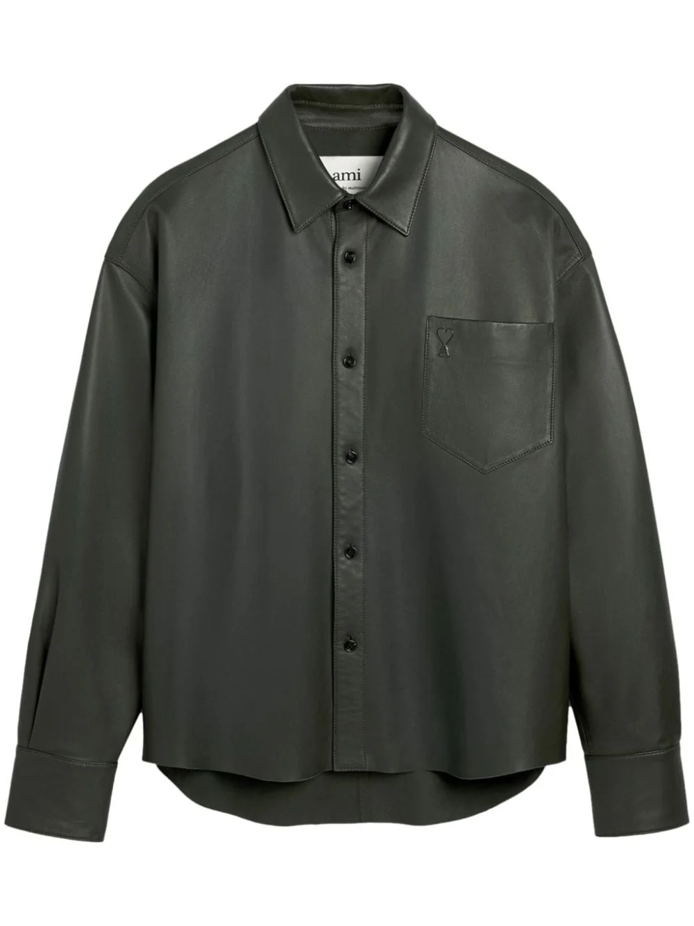 Ami de Coeur-embroidery lambskin shirt Highlights - Olive green - Lambskin - Straight-point collar - Front button fastening - Long sleeves - Buttoned cuffs - Signature ami de coeur monogram motif - Curved hem - When buying this unisex item, keep in mind that it is graded in standard men's sizing Imported Composition Lambskin 100%