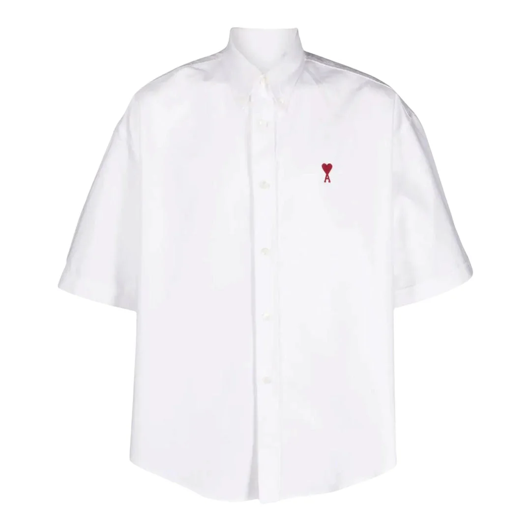 600036383WHT0XS / HSH230.CO0031/00/168 - Classic point collar - Short sleeves - Button-front closure - Signature red heart logo embroidery - Boxy, oversized fit - Premium cotton construction The AMI Boxy Fit Shirt delivers contemporary French sophistication with relaxed tailoring and modern proportions. Crafted from premium crisp white cotton with a structured yet comfortable fit, featuring classic point collar and clean button-front closure. The oversized silhouette and signature red heart logo embody AMI's distinctive Parisian streetwear aesthetic.