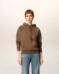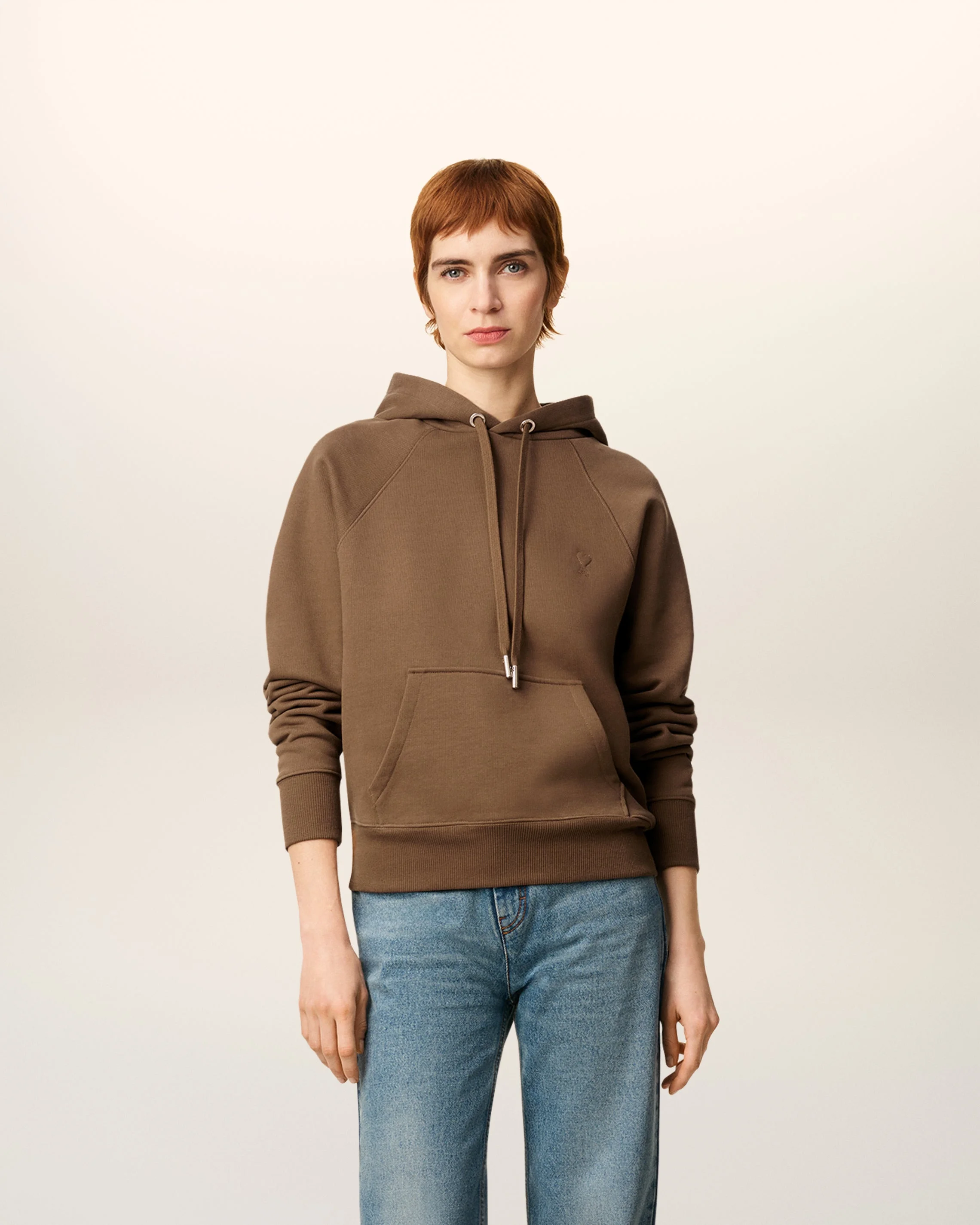 Ami de Coeur hoodie in heavy loopback cotton fleece. Unisex product Boxy fit Raglan sleeves Small embossed and topstitched Ami de Coeur on chest Tonal "ami" embroidery on the back under neckline Silver metal ends and "ami" engraved eyelets 61cm center back length (size XS) 65cm center back length (size M) Made in Portugal (with love) REF: USW758.747.216 SIZE & FIT This style is unisex. For man, take your normal size. For woman, take one size down than your usual size. Man model is 186 cm / 6"1 and is wearing a size M Woman model is 178 cm / 5"10 and is wearing a size XS COMPOSITION & CARE GUIDE Main Material : 100% Cotton Chlorine prohibited Do not tumble dry Do not dry clean Cool iron Machine wash at 30°c gentle