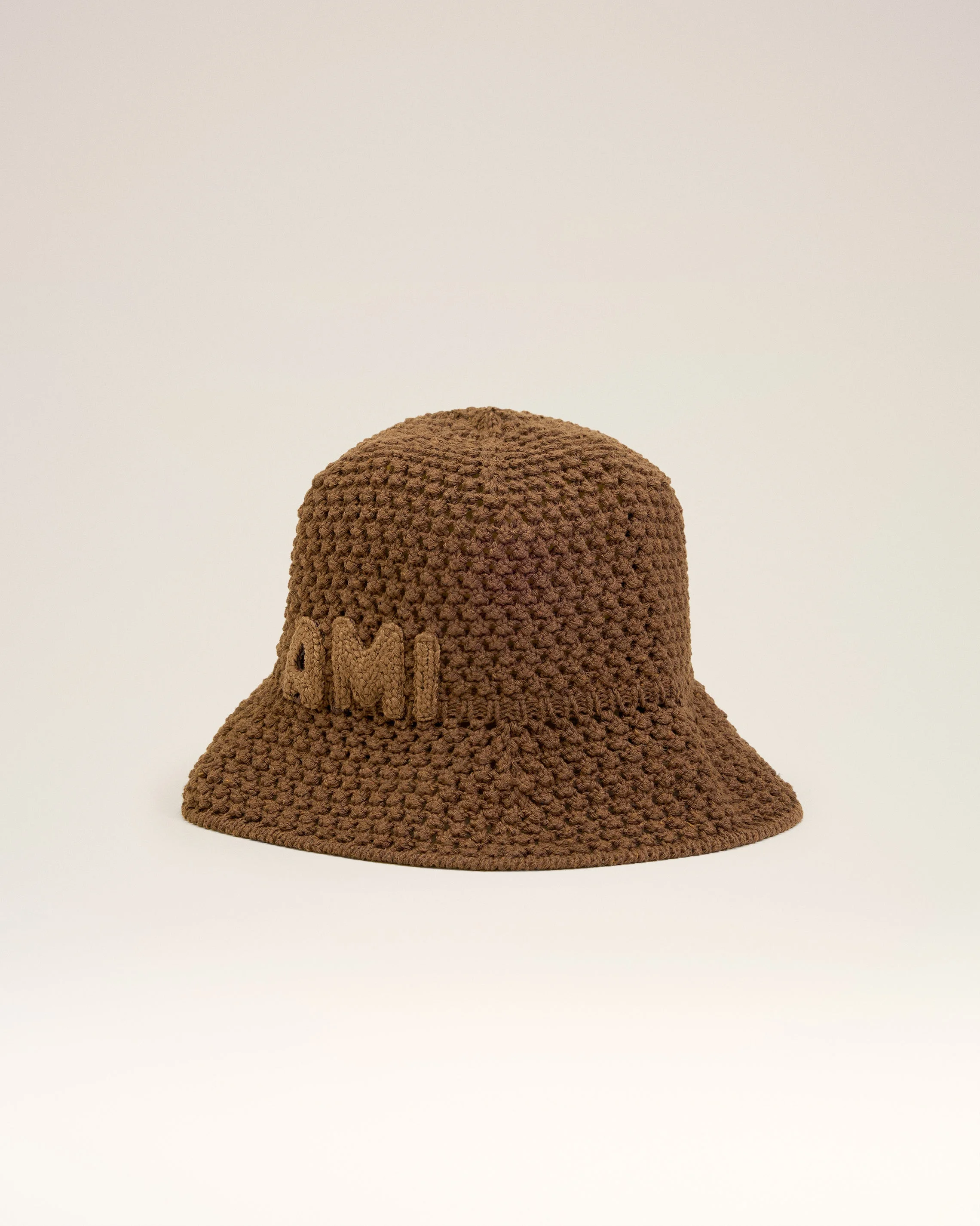 BROWN COTTON KNITTED AMI PATCH BUCKET HAT