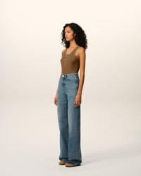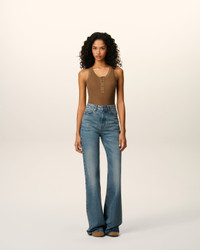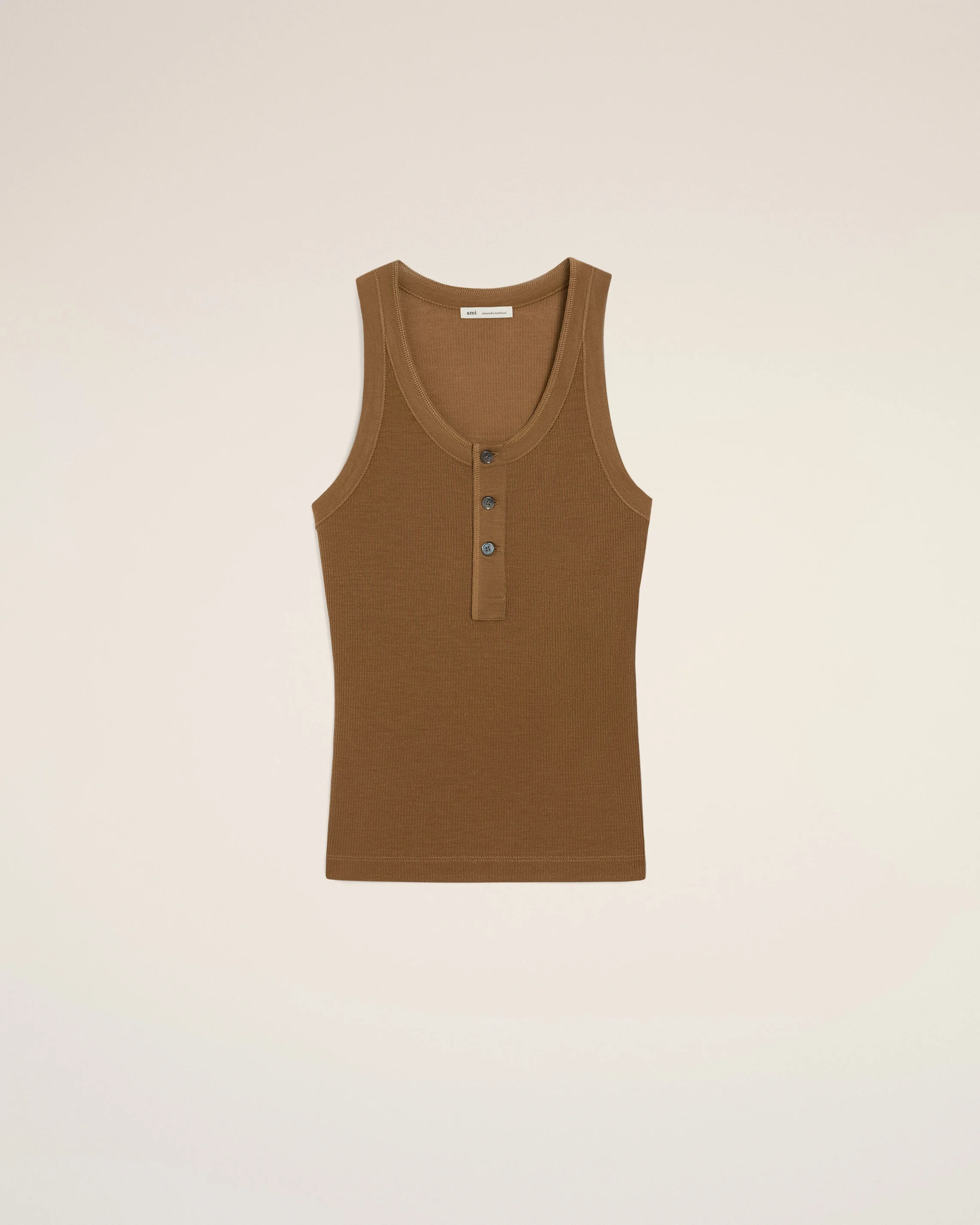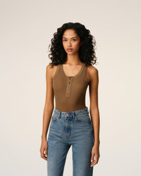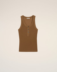 BROWN JERSEY TANKTOP WITH BUTTONED PLACKET