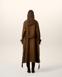 Belted mac in boiled wool gabardine. Unisex product Front opening with horn buttons with metal eyelets Adjustable cuffs with horn buttons with metal eyelets Belt in main fabric "ami alexandre mattiussi" leather label at the back Water repellent fabric 130 cm center back length (size XS) 134 cm center back length (size M) Made in Romania (with love) REF: UJK816.WV0078.216 SIZE & FIT This style is unisex. For man, take your normal size. For woman, take one size down than your usual size. Man model is 186 cm / 6"1 and is wearing a size M. Woman model is 181 cm / 5"11 and is wearing a size XS. COMPOSITION & CARE GUIDE Main Material : 100% New Wool Pocket Lining : 65% Polyester 35% Cotton Do not wash Chlorine prohibited Do not tumble dry Cool iron Dry clean gentle