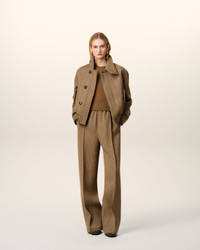 Harrington jacket in double wool herringbone pattern. Unisex product Herringbone pattern High collar with horn buttons with metal eyelets Nickel double metal zipper with "ami" engraved puller Adjustable cuffs with horn buttons with metal eyelets Side flap pockets, and internal pocket with invisible snap buttons Elasticated waist "ami alexandre mattiussi" leather label on the back Fully lined and padded 62 cm center back length (size XS) 64 cm center back length (size M) Made in Romania (with love) REF: UJK822.WV0080.2803 SIZE & FIT This style is unisex. For man, take your normal size. For woman, take one size down than your usual size. Man model is 186 cm / 6"1 and is wearing a size M. Woman model is 179 cm / 5"10 and is wearing a size XS. COMPOSITION & CARE GUIDE Main Material : 74% New Wool 15% Polyamide 7% Wool 3% Silk 1% Polyester Padding : 100% Polyethylene Main Lining : 50% Polyester 50% Cotton Pocket Lining : 100% Cotton Do not wash Chlorine prohibited Do not tumble dry Cool iron Dry clean gentle