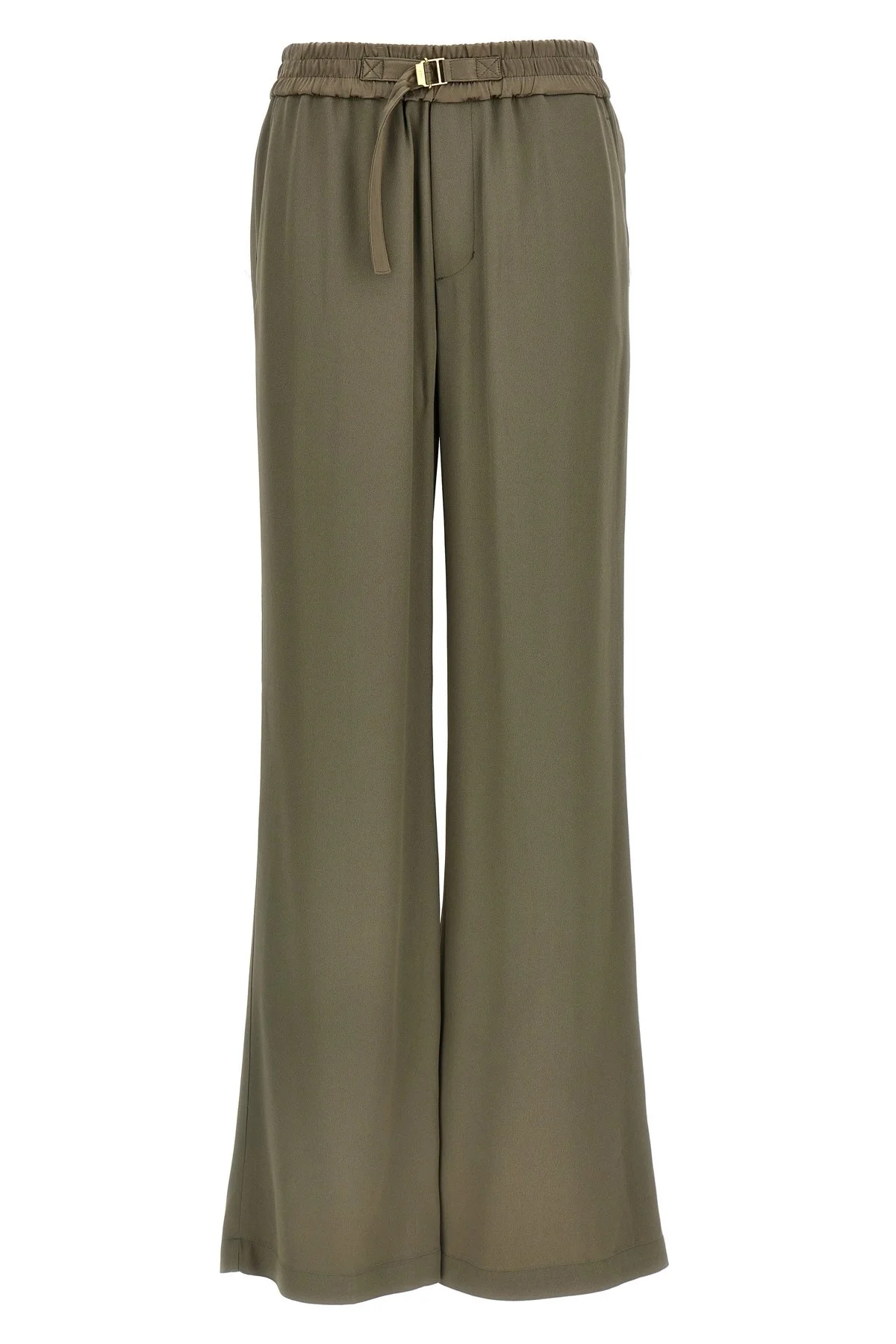cod. FTR203AC00140952 Viscose blend trousers, elastic waistband with adjustable strap, metal buckle, pockets, wide leg. Color: Beige Size & Fit: true to size fit Composition: 71% acetate, 29% viscose Made in: Portugal