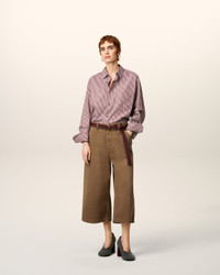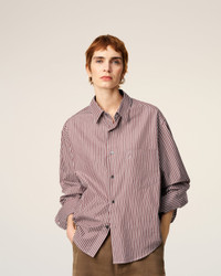 BURGUNDY COTTON EMBOSSED AMI DE COEUR STRIPED BOXY SHIRT