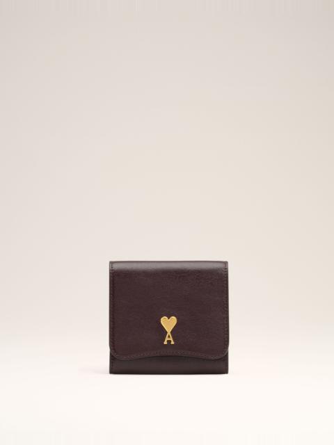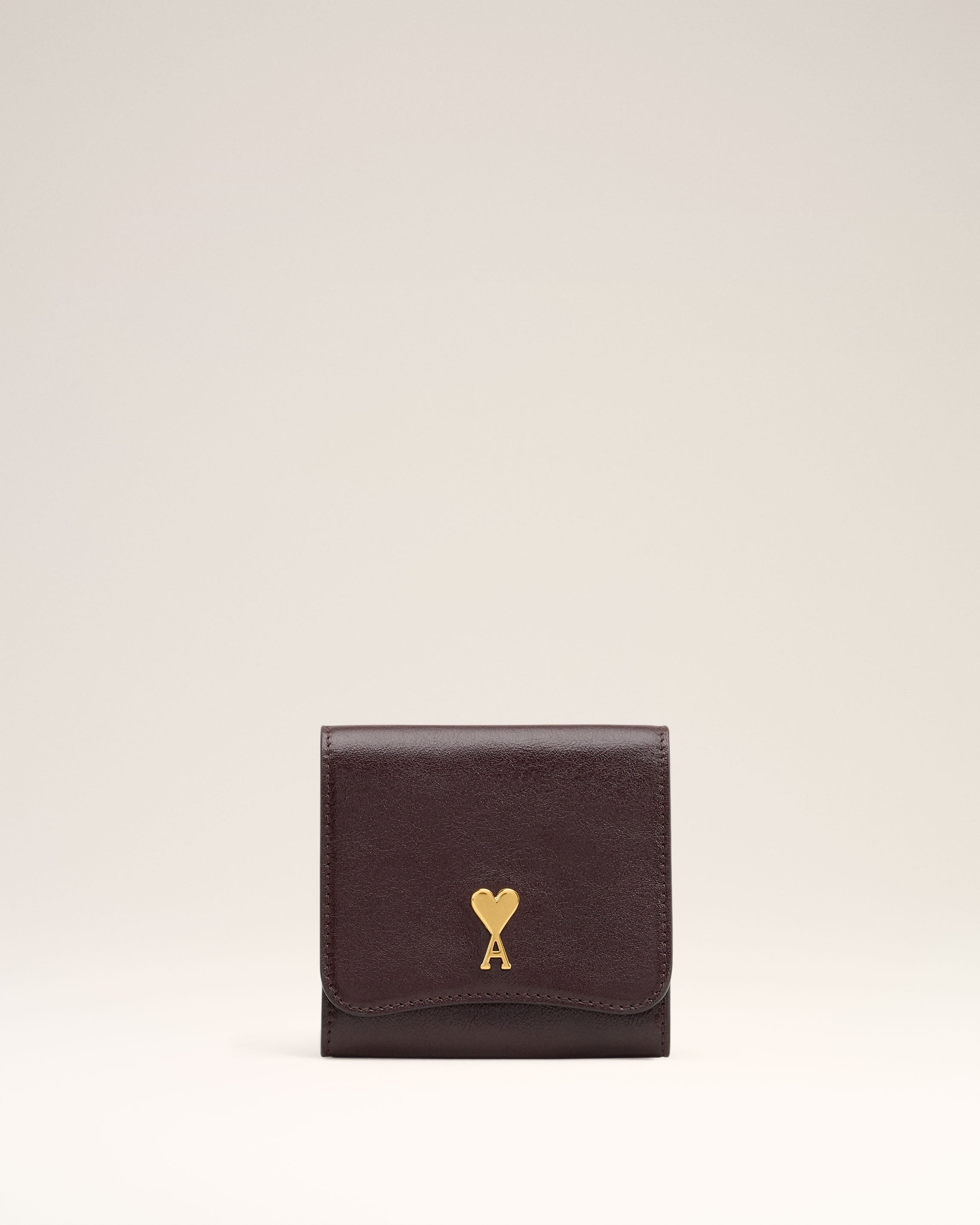 Paris Paris compact wallet in vegetable-tanned shiny textured leather. Natural patina of the leather Cotton canvas lining Ami de Coeur stud One central zipped coin pocket, six card compartments and one front compartment Snap button fastening Metal hardware in vibrated brass color Size: 11x10 cm Made in Morocco (with love) REF: USL203.AL0051.633 SIZE & FIT Size: 11x10 cm COMPOSITION & CARE GUIDE 100% Calfskin Our leathergoods are made from delicate materials. To keep the original aspect of the leather as long as possible, please avoid contact with abrasive and oily substances. Make sure not to expose them at the direct light for too long and to wipe them with a soft and dry cloth when wet. To avoid deformations, insure to not overload them. Keep them in their dust bag and safe from humidity.