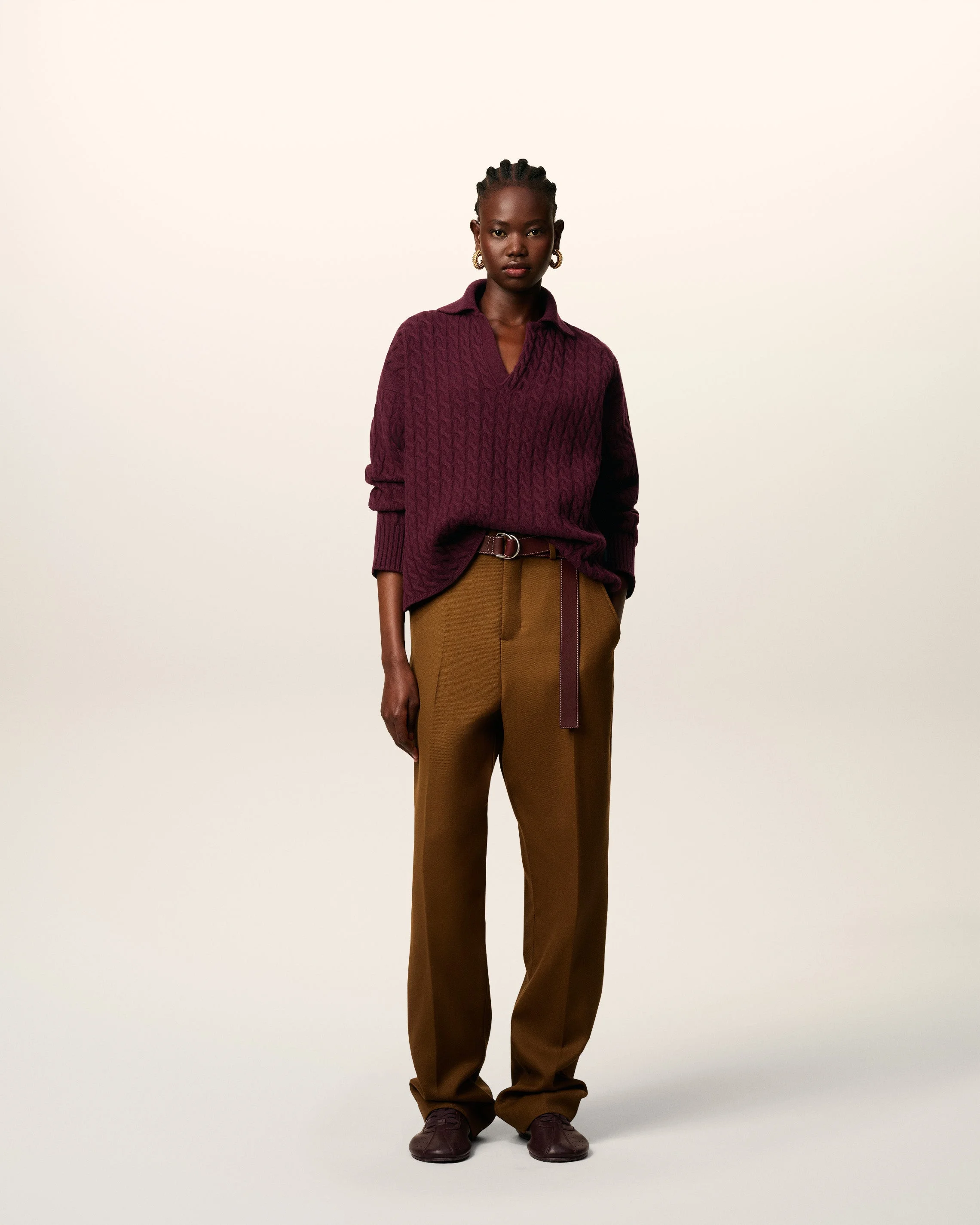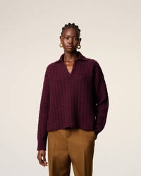 BURGUNDY WOOL CABLES KNIT POLO