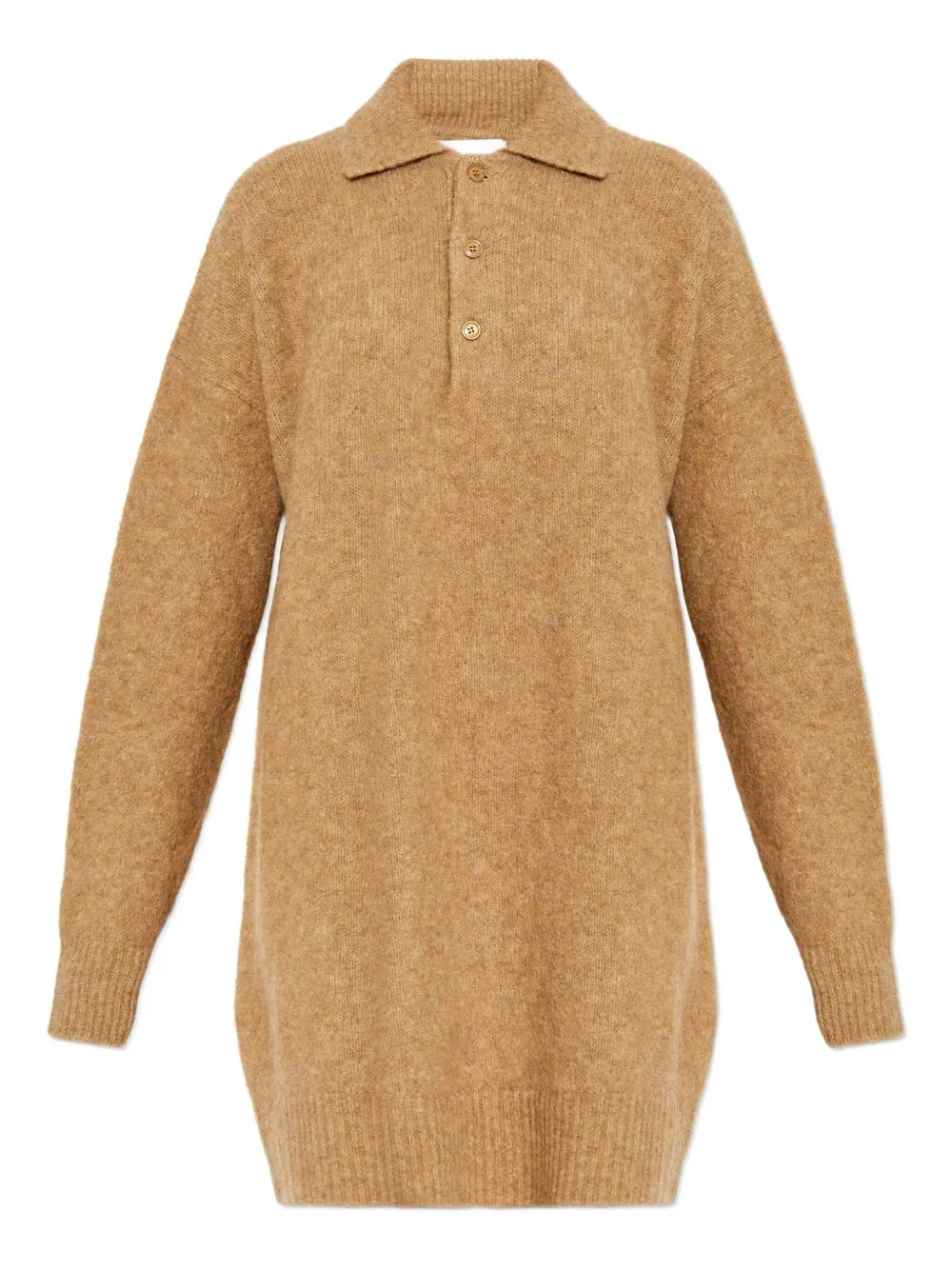 Buttoned collared dress Highlights - Light brown - Button fastening - Long sleeves - Knitted Made in Italy Composition Alpaca 42%, Wool 40%, Polyamide 16%, Elastane 2% Washing instructions Read Manufacturer Guidelines