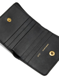 Carrousel leather wallet Highlights - Black - Smooth grain - Press-stud fastening - Gold-tone hardware - Card slots - Note compartment - Engraved logo Imported Composition Outer: Calf Leather 100% Lining: Canvas 100% SIZE & FIT Measurement LENGTH 3.34 in(8.5 cm) WIDTH 4.33 in(11 cm)