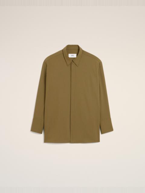 Loose shirt in wool tricotine. Large fit Classic collar Buttoned cuffs Hidden buttoned placket Horn buttons Silver metal placket Ami de Coeur at the middle back Side slits at the bottom Made in Portugal (with love) REF: FSH782.WV0067.020 SIZE & FIT This item is designed to be worn lose. Take your normal size. Model is 177 cm / 5"9 and is wearing a size 36. COMPOSITION & CARE GUIDE Main Material : 100% New Wool Chlorine prohibited Do not tumble dry Dry clean gentle Do not wash Medium iron