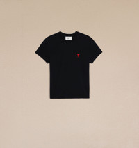 Product Description black organic cotton signature Ami de Coeur monogram motif crew neck short sleeves straight hem When buying this unisex item, keep in mind that it is graded in standard men's sizing. Conscious: This product contains at least 70% certified organic content. T-shirt in organic cotton jersey. - Classic fit - Unisex product - 66 cm middle back length (size M) - 58 cm middle back length (size XS) - Red Ami de Cœur chest embroidery - Tonal AMI embroidery under back neckline - GOTS certified product - Made in Portugal (with love) REF BFUTS001.724001 Size & Fit This style is unisex. For man, take your normal size. For woman, take one size down than your usual size. Materials & Care Instructions 100% Cotton - Machine wash at 30°C - Do not bleach - Do not tumble dry - Cool iron - Dry clean gentle - Reshape whilst damp - Wash inside out - Iron inside out - Wash with similar colours Find out more about product traceability.