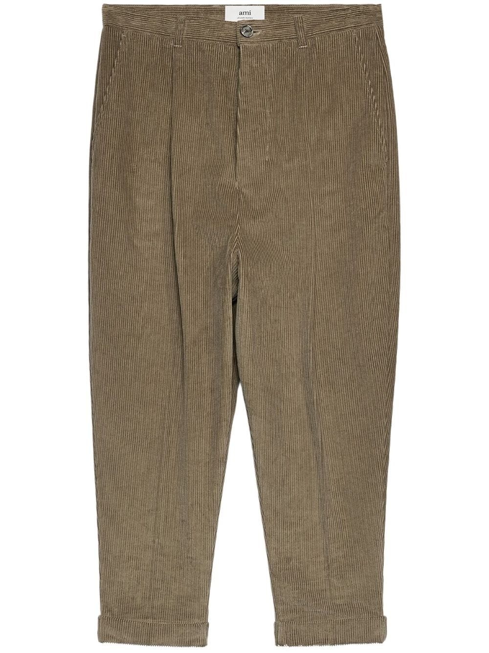 corduroy box-pleated tapered trousers